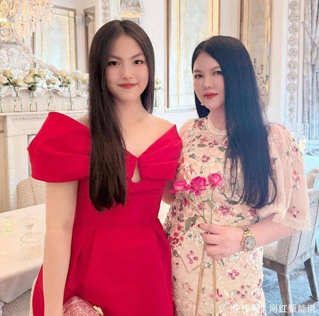 一个月后,王诗龄再次在母亲李湘的带领下参加了巴黎时装周的晚宴。 她身穿粉色纱质礼服裙,搭配钻石项链,造型贵气十足。